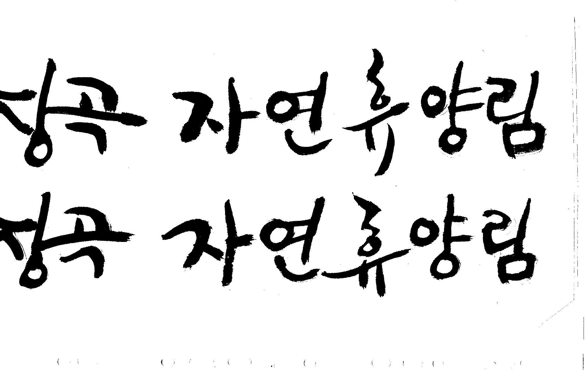 캘리 부탁드려요~ 김철호 일반 1 9638 2008.12.25 23:24 > > 홈페이지 시안 작업중인데. > 메인으로 들어가는 폰트를 명조체로 넣었는데 좀 딱딱한 느낌이 들어 > 캘리로 쓰면 느낌이 좋을것 같아서 부탁드리게 됐습니다. > [장곡 자연휴양림] 이구요. > 홈페이지 시안으로 채택되면 결과물 보여드릴께요^^ > 추운겨울 감기 조심하시고 > 즐거운 크리스마스 되세요! > 감사합니다.. 유용하게 쓰시길... 글자수가 많아서 스캔이 잘렸네요.. 헷갈려서 중복되게 올라간것이 있을것인데.. 맞춰서 편집하세요..